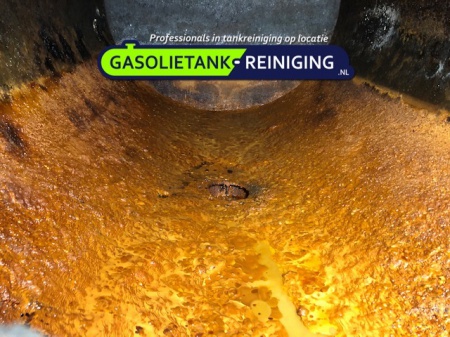 | Twee cilindervormige tanks van elke 1.200 liter. Voor zover de huidige eigenaar kon achterhalen waren de gasolietanks nog nooit eerder schoongemaakt. En dat was te zien ! Nadat we de tanks hadden leeggepompt waartijdens de gasolie meermaals tot 2 micron werd gefilterd, konden we de luiken openen. In beide gasolietanks troffen we een laag bacteriesludge van vele centimeters aan. Het was een behoorlijke klus om dit te verwijderen maar het resultaat mocht er zijn. IJveer XII heeft weer schone gasolie en schone gasolietanks. |